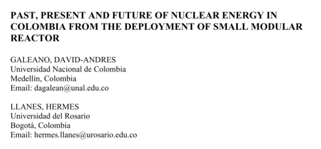 Este artículo analiza el posible desarrollo de la energía nuclear en Colombia y América Latina, centrándose en los Reactores Modulares Pequeños (SMRs). Examina los factores socioeconómicos, políticos y tecnológicos que históricamente han influido en la adopción nuclear regional, y evalúa el potencial de los SMRs para diversificar la matriz energética colombiana. El estudio destaca las ventajas estratégicas de la energía nuclear para el desarrollo sostenible y la generación libre de emisiones de carbono, sin dejar de reconocer los desafíos pendientes para su implementación en el contexto latinoamericano.